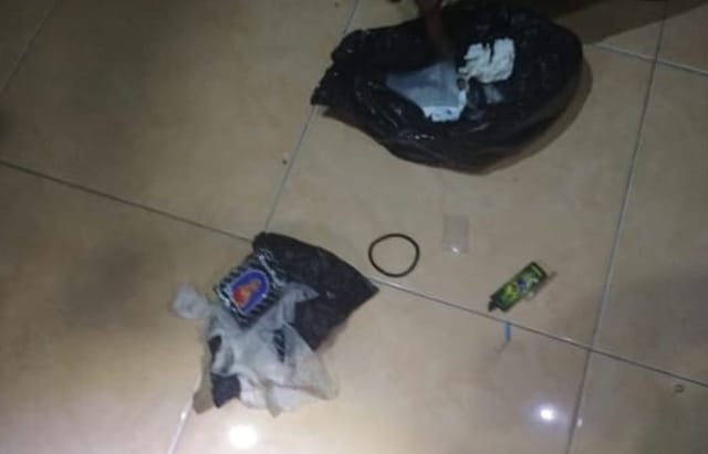 Pada saat dilakukan penggeledahan di dalam kamar, petugas berhasil menemukan alat kontrasepsi berupa tissue magic dan alat hisap sabu atau bong serta beberapa sachet sabu kosong habis pakai.