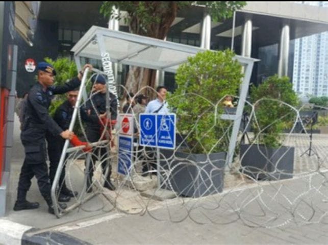 BERITA.NEWS, Jakarta – Mengantisipasi gejolak massa yang beraksi, pihak kepolisian memasang kawat berduri di halaman depan Gedung KPK, Jalan Kuningan Persada Jakarta Selatan, Senin (23/9/2019).