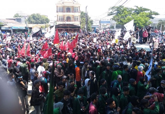 Demonstrasi tersebut, gabungan berbagai kampus dan organisasi mahasiswa se-Makassar. Mereka menyuarakan protes dan penolakan atas kebijakan pemerintah pusat khususnya Presiden dan DPR RI terhadap RKUHP dan Revisi UU KPK.