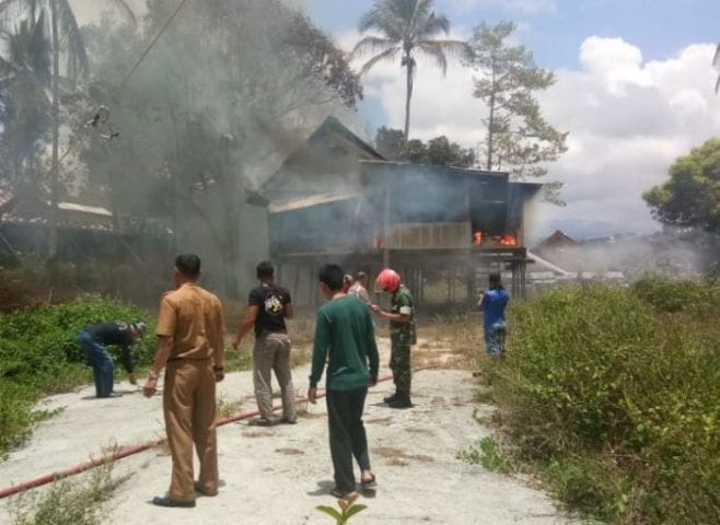 Rumah panggung yang merupakan peninggalan orang tuanya itu hangus dan menyisakan rangka usai api melalap selama lebih dari 15 menit. Karena material kayu, membuat api mudah membesar dan menghanguskan badan rumah.