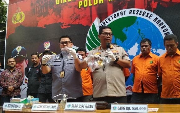 Polisi saat merilis kasus terkait penyalahgunaan narkoba. (CNN Indonesia)