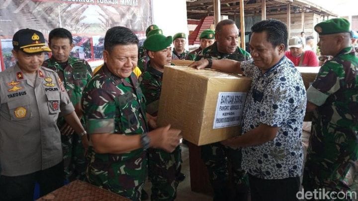 Sementara itu TNI-Polri terus memberikan bantuan terhadap pengungsi di Timika Papua. Pangdam XVII/Cenderawasih Mayjen TNI Herman Asaribab hingga Wakapolda Papua, Brigjen Jacobus Marjuki tiba di pengungsian untuk memberikan bantuan.