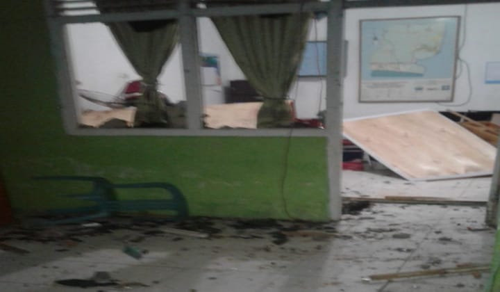 Hampir seluruh kaca dan bangunan di kantor desa Biangkeke di rusak oleh massa yang mengamuk di kantor tersebut, pada Kamis, (17/10/2019) malam.