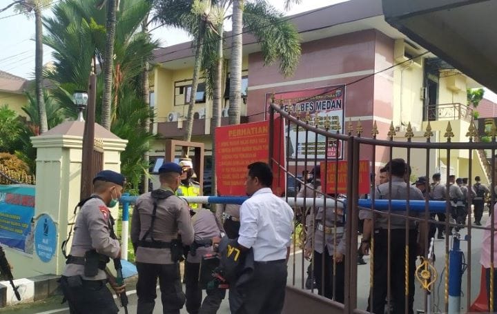 Seperti dilaporkan Antara, dari pantauan di lokasi, sejumlah petugas Kepolisian tampak berjaga di depan pintu masuk dan juga di dalam halaman Mako Polrestabes Medan.