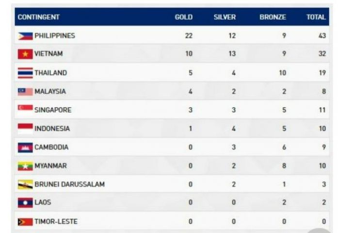Indonesia Peringkat Ke-6, Ini Klasemen Medali SEA Games 2019
