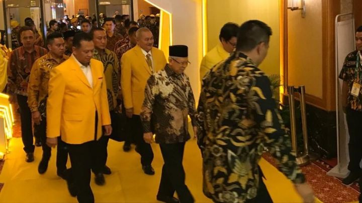 Airlangga dan Bamsoet sambut Ma'ruf Amin di penutupan Munas Golkar. (Gibran Maulana/detikcom).