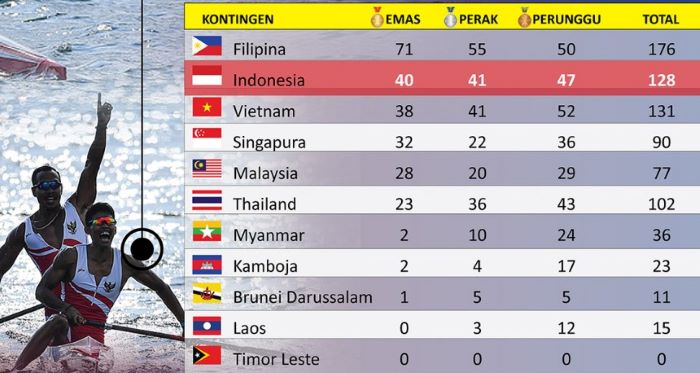 Dengan tambahan medali tersebut, kontingen Indonesia mengumpulkan 40 medali emas, 41 perak dan 47 perunggu. Untuk posisi puncak ada Filipina dengan 71 emas, 55 perak dan 50 perunggu dan di bawah Indonesia ada Vietnam dengan raihan 38 emas, 41 perak dan 52 perunggu.