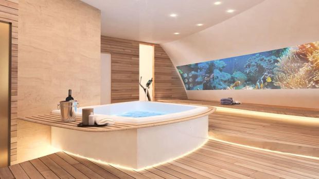 Terlihat seperti di film James Bond, kapal pesiar yang akan dibuat ini menawarkan pemandangan keindahan permukaan dan dasar laut. Konsepnya yang mewah juga sangat menarik bagi traveler pecinta wisata bahari.