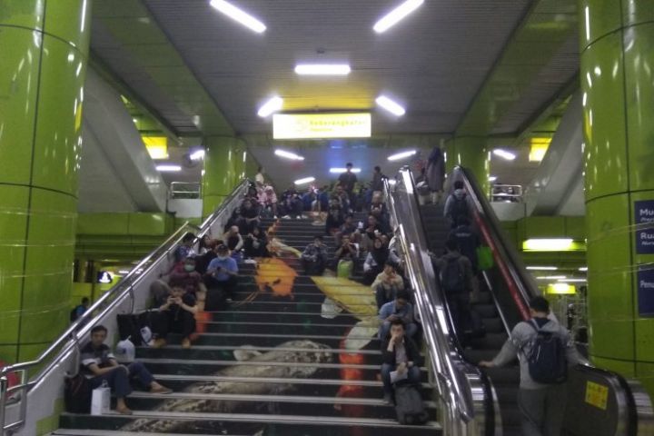 Gangguan perjalanan kereta api diinfokan terjadi di Stasiun Besar Gambir sehingga menyebabkan banyak penumpang harus menunggu kedatangan kereta antara satu hingga dua jam.