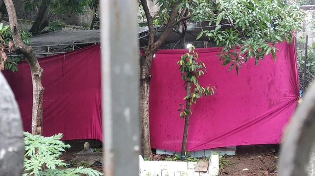 Pantauan Detikcom, proses pembongkaran berlangsung tertutup. Kain berwarna merah dipasang mengitari area makam. Proses pembongkaran diwarnai hujan cukup deras.