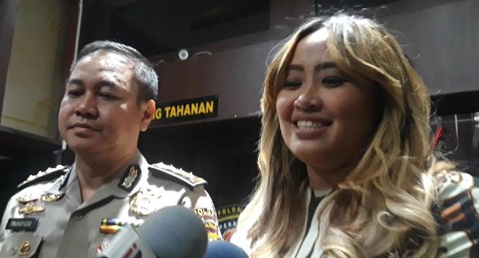 Pinkan Mambo usai diperiksa di Polda Jatim (detikcom)
