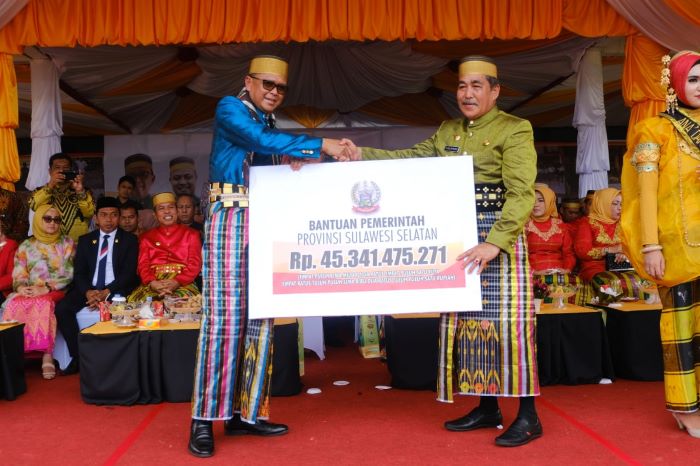 BERITA.NEWS, Makassar – Gubernur Sulsel Nurdin Abdullah menyerahkan Bantuan Keuangan daerah bawahan sebanyak Rp45,3 miliar, sebagai kado Hari Ulang Tahun (HUT) Sidrap ke 676 tahun.
