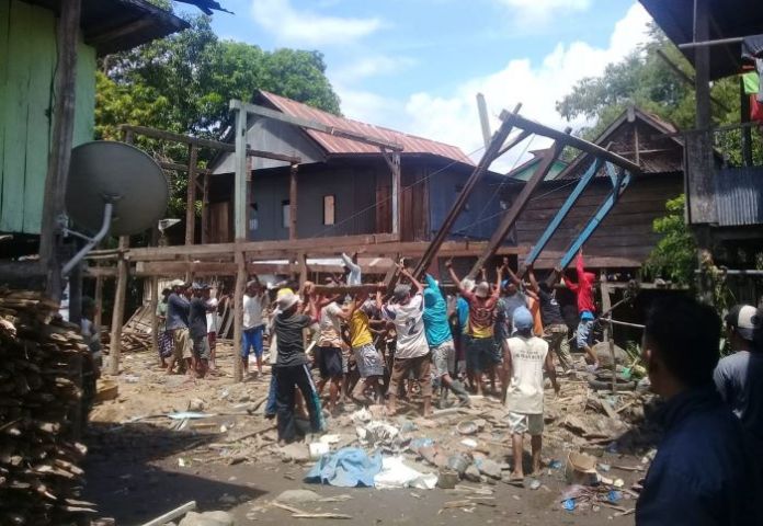 BERITA.NEWS, Bulukumba – Sungguh miris. Diduga hanya karena beda pilihan dalam Pemilihan Kepala Desa (Pilkades) seorang warga Dusun Bua, Desa Paenre Lompoe, Kecamatan Gantarang, Kabupaten Bulukumba, Sulawesi Selatan, rela membongkar rumah miliknya, Senin (24/2/2020). Dia membongkar rumahnya diduga karena berbeda pilihan dengan pemilik lahan.
