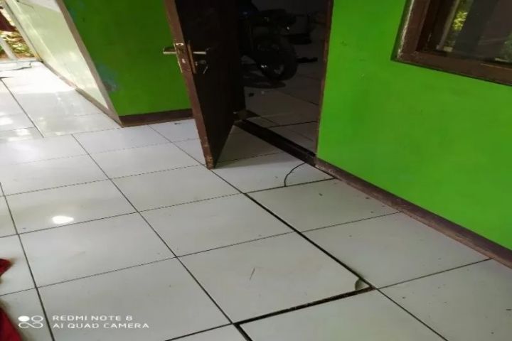 Satu rumah warga di Desa Werdi, Kecamatan Paninggaran, Kabupaten Pekalongan, Jawa Tengah, yang bagian lantainya rusak akibat pergerakan tanah. (ANTARA/HO Pemdes Werdi)