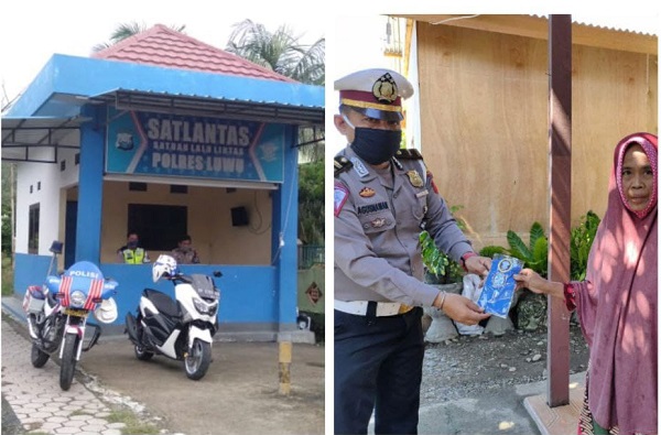 BERITA.NEWS, Luwu – Sembari Patroli Biru, Sat Lantas Polres Luwu berkeliling Kota Belopa, Sabtu (11/04/20) pagi, berkeliling Kota Belopa. Mereka membagikan masker kepada masyarakat sekitar.