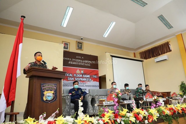 BERITA.NEWS, Bantaeng – Bertempat di Aula Endra Dharmalaksana 99 Polres Bantaeng, baru saja digelar Tactical Floor Game (TFG) dan Sispamkota dalam rangka Antisipasi Dampak Sosial Wabah Covid-19 yang dihadiri langsung oleh Bupati Bantaeng, H. Ilham Azikin, bersama para unsur Forum Koordinasi Pimpinan Daerah Kabupaten Bantaeng, Kamis (16/4/2020)