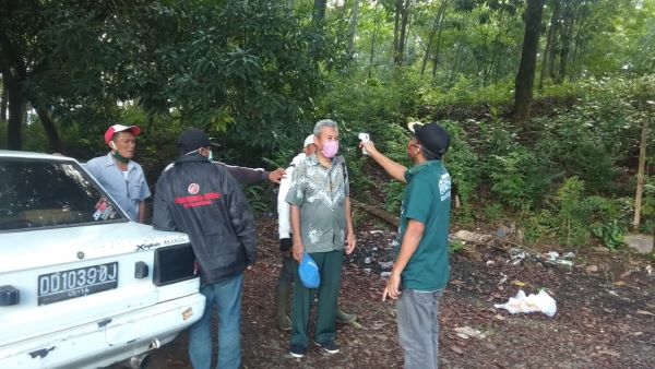 Kepala Desa Pitung Pindangnge, Andi Muh Amran bersama aparatnya melakukan berbagai langkah antisipasi pencegahan masuknya virus corona, di antaranya dengan melakukan penyemprotan cairan disinfektan. Selain itu, melakukan pengecekan suhu tubuh warga yang ada di wilayahnya pada Kamis (23/4/2020).