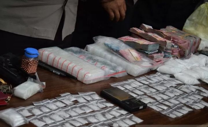 Kapolres katakan dalam penggerebekan tersebut telah mengamankan 1.054,58 gram diduga narkoba jenis sabu dan uang tunai sebanyak Rp149.600.000.