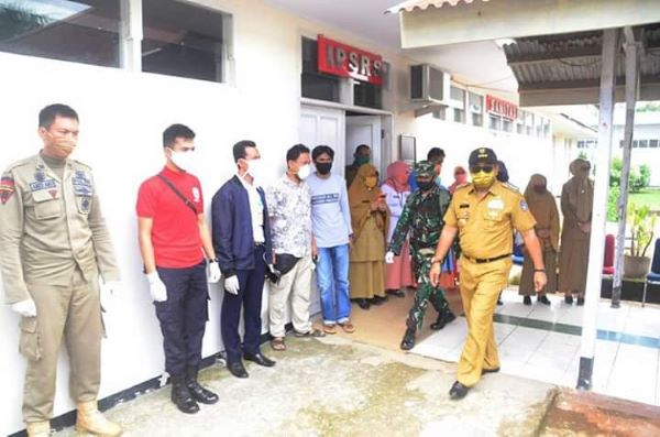 Andi Fahsar yang juga Ketua Tim Gugus Tugas Percepatan Penanganan Covid-19 Bone ditemani Plt Sekretaris Daerah (Sekda) Bone Muh Yamin, Direktur RSUD Tenriawaru Bone Nurminah A Yusuf.