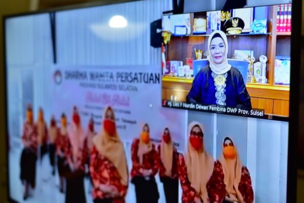 BERITA.NEWS, Makassar – Dharma Wanita Persatuan (DWP) Sulsel menggelar halal bihalal bersama Ketua dan pengurus DWP kabupaten/kota, di Rujab Sekda Provinsi Sulsel, tema Memperkuat Ukhuwah Islamiyah di tengah Pandemi Covid-19. Halal bihalal digelar lewat video conference.