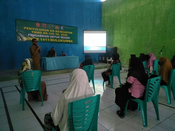 BERITA.NEWS, Bulukumba – TNI Manunggal Membangun Desa (TMMD) ke-109 Kodim 1411 Bulukumba kembali melaksanakan kegiatan non fisik dengan memberikan penyuluhan tentang Keluarga Berencana (KB) kepada masyarakat di sekitar lokasi kegiatan TMMD, Senin (28/09/2020).