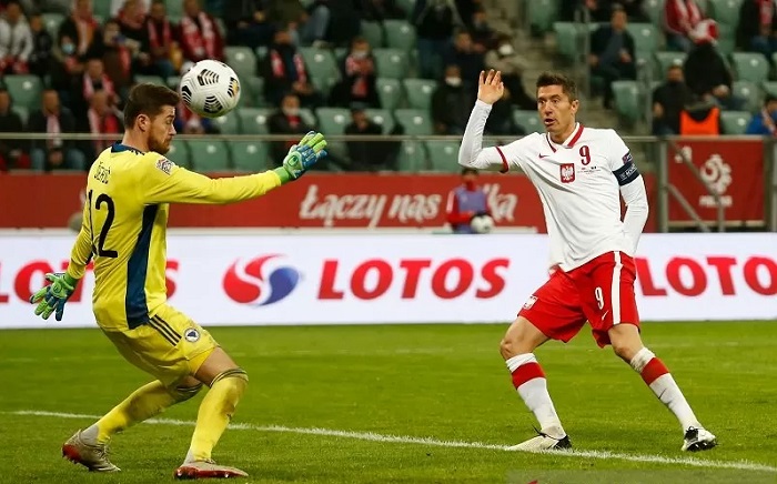 Polandia mendapat keuntungan besar ketika tamunya dipaksa melanjutkan pertandingan dengan 10 pemain sejak menit ke-14 lantaran bek Anel Ahmedhodzic diganjar kartu merah karena pelanggaran terhadap Lewandowski.