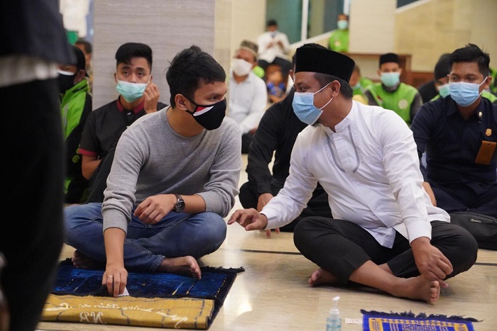 BERITA.NEWS, Makassar – Wakil Gubernur (Wagub) Sulsel Andi Sudirman Sulaiman shalat subuh berjamaah bersama manajemen dan driver Gojek dengan mematuhi protokol kesehatan ketat di Masjid Amirul Mukminin, Selasa (3/11/2020).