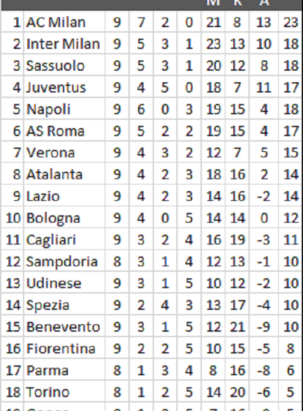Celah sebesar lima poin didapat Milan berkat kemenangan 2-0 atas Fiorentina pada Minggu (29/11), ketika sehari sebelumnya Sassuolo sebagai pesaing terdekat justru takluk 0-3 dari Inter Milan.