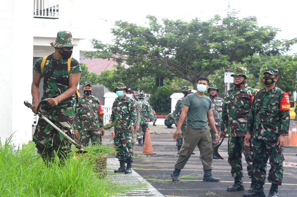 Ia mengatakan, peserta karya bakti dengan tetap menerapkan protokol kesehatan pencegahan Covid-19 bahu membahu membersihkan lingkungan sekitar museum perjuangan TNI ini.