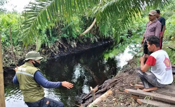 Komandan Jaga BKSDA Kalteng Pos Sampit, Muriansyah memeriksa lokasi buaya menyerang seorang bocah di Sungai Hambawang Desa Ganepo Kecamatan Seranau, Kamis (31/12/2020) ANTARA/HO-BKSDA Pos Sampit