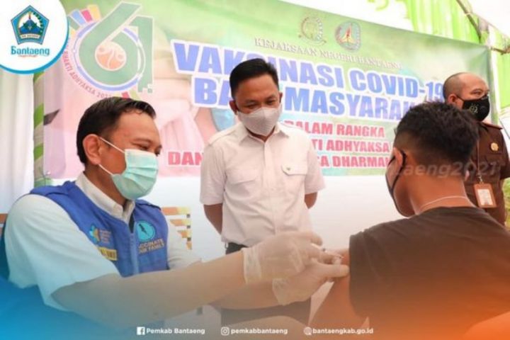 Sambut Hari Bhakti Adhyaksa ke-61, Bupati Bantaeng Hadiri Pelaksanaan Vaksinasi Covid-19