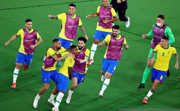FOTO: Tundukkan Spanyol, Brazil Sabet Medali Emas Sepak Bola Olimpiade Tokyo
