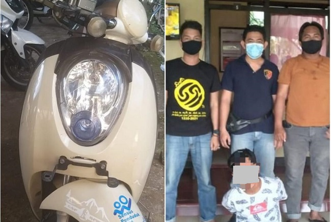 Dari hasil interogasi, pemuda ini mengakui dan membenarkan telah mengambil sebuah sepeda motor merek Honda Scoopy warna putih yang terparkir di halaman rumah korban.