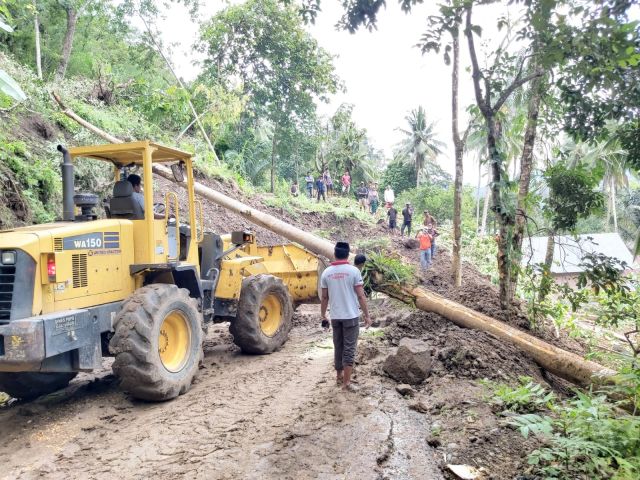 Akibatnya, dua rumah warga rusak akibat tertimbun material. Akses jalan yang hubungkan dua desa terdampak juga tertutupi tanah.