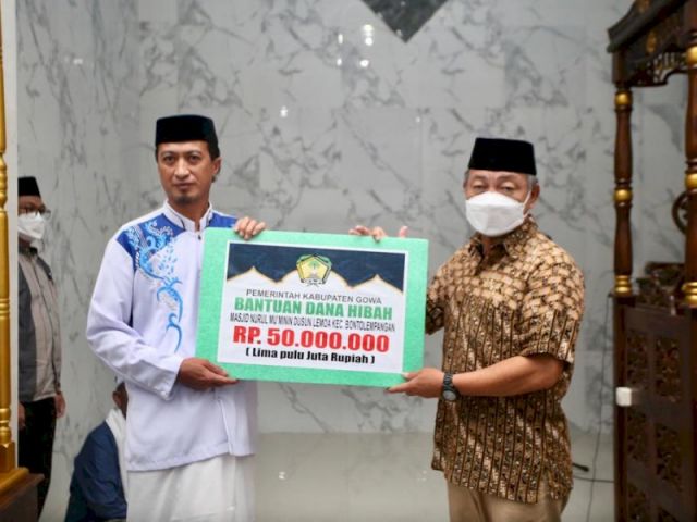 Pada kunjungannya ini bersama Wakil Bupati Gowa, Sekda Gowa, Forkopimda dan SKPD Lingkup Pemkab Gowa juga menyerahkan bantuan pembangunan masjid sebesar Rp50 juta.