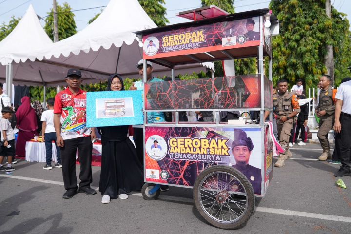 “Hari ini menyerahkan gerobak gratis pakai tenaga surya. Paling tidak ibu bisa menjual tidak pakai listrik,” ucap Andi Sudirman Sulaiman.