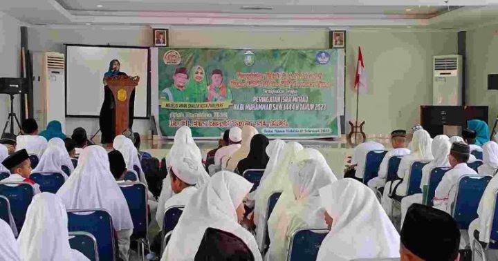 BERITA.NEWS,Parepare- Dewan Pembina Majelis Anak Saleh (MAS), Erna Rasyid Taufan kukuhkan pengurus tingkat SD dan MI untuk Kecamatan Ujung Kota Parepare di Gedung Balai Ainun, Parepare. Jumat, (17/2/2023).
