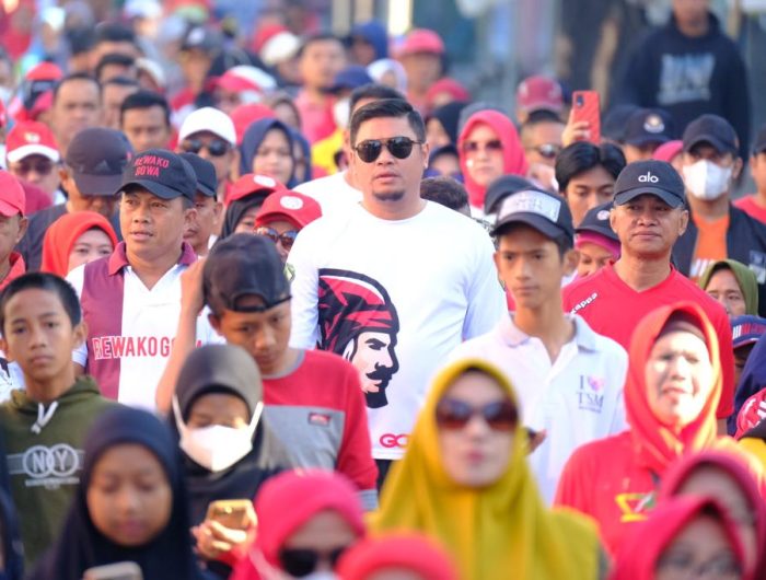 BERITA.NEWS, Gowa – Bupati Gowa, Adnan Purichta Ichsan didampingi Wakil Bupati Gowa, Abd Rauf Malaganni melepas peserta Jalan Santai yang merupakan salah satu rangkaian dalam menyambut Hari Ulang Tahun (HUT) Ke-78 Republik Indonesia Tingkat Kabupaten Gowa di Taman Sultan Hasanuddin, Jalan Tumanurung Sungguminasa, Minggu (13/8).
