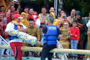 “Hari ini kita melaksanakan lomba iris bawang, dimana lomba ini masing-masing SKPD berpasangan, ini untuk memperlihatkan kerjasama, selain itu kita melaksanakan pukul bantal yang tujuannya tiada lain adalah untuk menjaga fisik kita, menjaga kekompakan, silaturahmi sesama SKPD dan jajarannya,” ungkapnya.