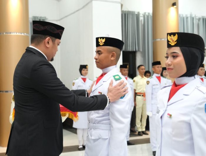 BERITA.NEWS, Gowa – Bupati Gowa, Adnan Purichta Ichsan mengukuhkan 70 Anggota Pasukan Bendera Pusaka (Paskibraka) Kabupaten Gowa Tahun 2023 sekaligus melakukan pemeriksaan duplikat bendera merah putih di Baruga Karaeng Galesong, Kantor Bupati Gowa, Selasa (15/8) malam.