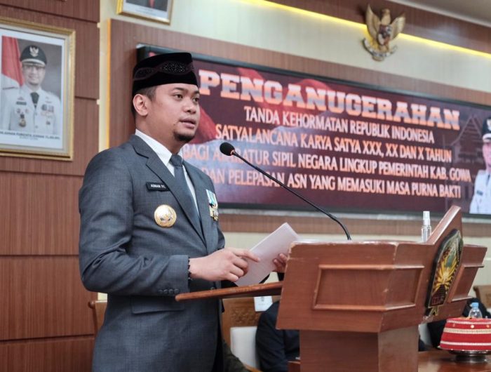 BERITA.NEWS, Gowa – Bupati Gowa, Adnan Purichta Ichsan melakukan penyematan Tanda Kehormatan Satyalancana Karyasatya 30 tahun, 20 tahun, dan 10 tahun bagi Aparatur Sipil Negara (ASN) Lingkup Pemerintah Kabupaten Gowa.