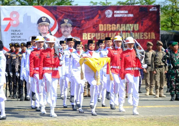 Pasukan Pengibar Bendera Pusaka (Paskibraka) Kabupaten Gowa yang beranggotakan 70 orang itu sukses mengibarkan bendera sang saka merah putih dengan baik, di Lapangan Upacara Kantor Bupati Gowa, Kamis (17/8).