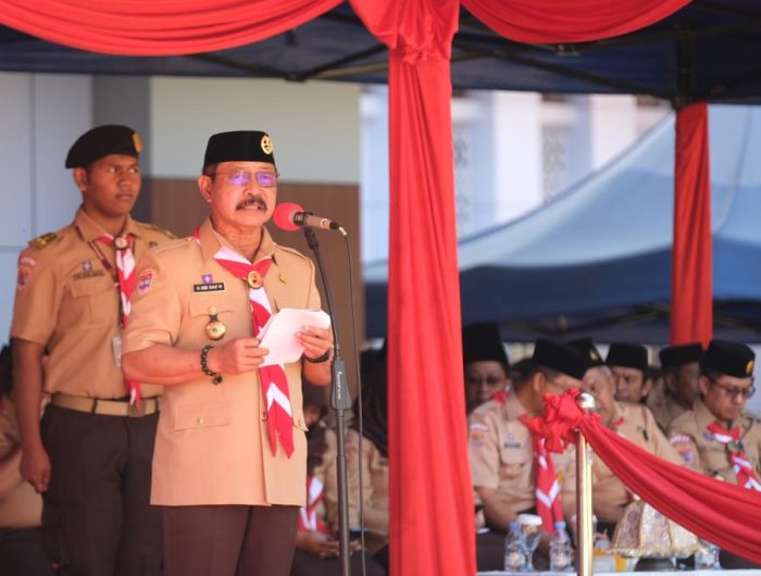BERITA.NEWS, Gowa – Wakil Bupati Gowa selaku Wakil Ketua Majelis Pembimbing Cabang (Mabicab) Gerakan Pramuka Gowa, Abd Rauf Malaganni bertindak selaku Pembina Apel Besar Gerakan Pramuka Ke-62 Tahun Tingkat Kwartir Cabang (Kwarcab) Gowa yang berlangsung di Lapangan Upacara Kantor Bupati Gowa, Senin (28/8).