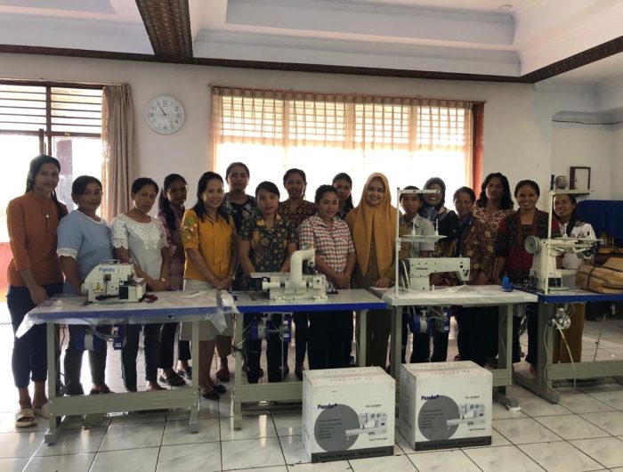 Diantaranya 1 unit Mesin Jahit Cangklong, 1 unit Mesin Jahit Typical, 1 unit Mesin Seset Kulit, 1 unit Mesin Obras, 2 unit Mesin Jahit Portable, dan 2 unit Hand Press Mata Ayam.