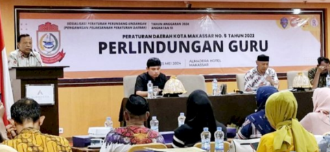 MAKASSAR, BERITA.NEWS– Anggota DPRD Kota Makassar , HM Yunus menggelar penyebarluasan informasi produk hukum daerah, yaitu sosialisasi Perda Nomor 5 Tahun 2022 Tentang Perlindungan Guru, di Hotel Almadera, Sabtu (25/5/2024).