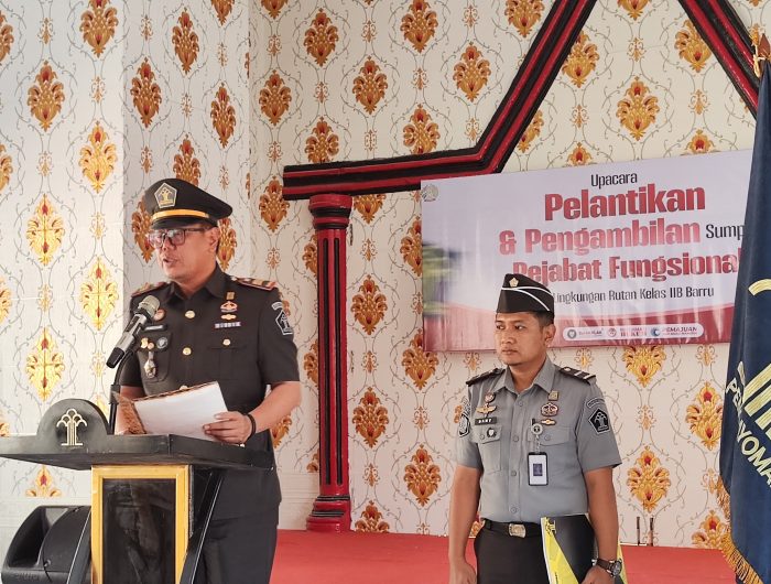 BERITA.NEWS, Makassar – Pelantikan dan Pengambilan Sumpah Jabatan Fungsional Pengamanan Pemasyarakatan Ahli Pertama di Lingkungan Rumah Tahanan Negara Kelas IIB Barru, Rabu (14/08/2024) berlangsung dengan baik.