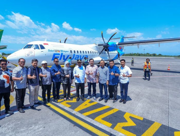 BERITA.NEWS,Makassar- Gubernur Sulawesi Selatan, Andi Sudirman Sulaiman meresmikan penerbangan perdana subsidi rute Makassar–Bone menggunakan pesawat ATR 72-500 milik Fly Jaya Airlines. Launching penerbangan tersebut digelar di Bandara Internasional Sultan Hasanuddin, Kabupaten Maros, Sabtu (13/9/2025).