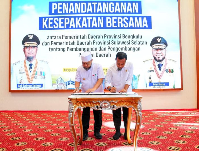 BERITA.NEWS,Makassar- Gubernur Sulsel Andi Sudirman Sulaiman dan Gubernur Bengkulu Helmi Hasan menandatangani Kesepakatan Bersama antara Pemerintah Provinsi Bengkulu dan Pemerintah Provinsi.