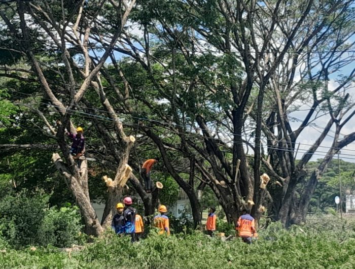 Dalam kegiatan tersebut, tim melakukan pemangkasan pohon dan penataan kabel listrik yang tampak semrawut di sekitar area Kantor Bupati.