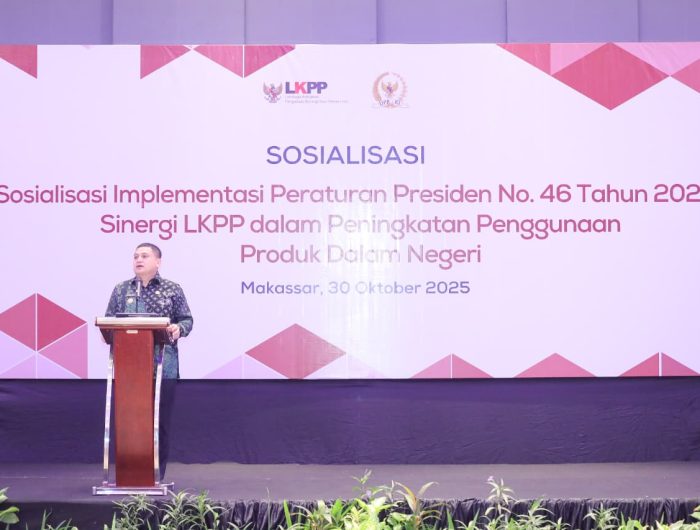 Penegasan tersebut disampaikan Munafri saat memberikan sambutan pada Sosialisasi Implementasi Peraturan Presiden (Perpres) Nomor 46 Tahun 2025 tentang Sinergi LKPP dalam Peningkatan Penggunaan Produk Dalam Negeri, yang berlangsung di Hotel Four Points by Sheraton Makassar, Kamis (30/10/2025).